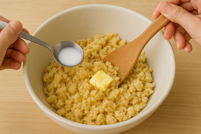 このやり方は水分量を微調整しやすく、パサつき具合を見ながら柔らかさをコントロールできます。