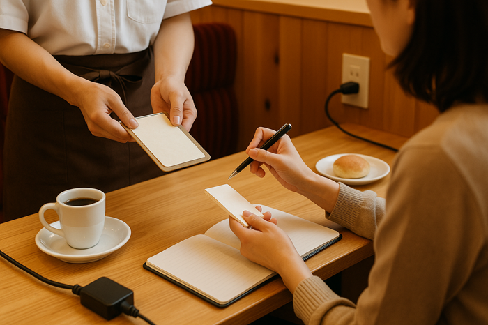パソコン作業をする予定の日は、入店時にさりげなく席の設備を確認したり、店員さんに軽く尋ねると安心して作業できます。