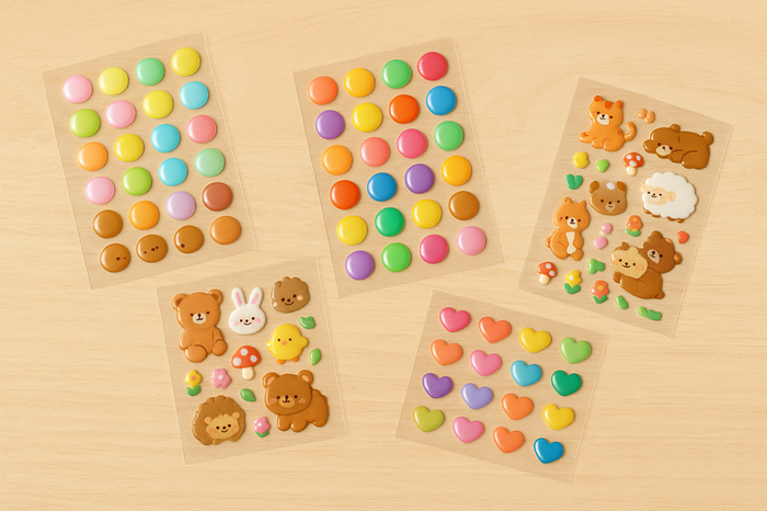 ボンボンドロップシールは、ぷっくりとした立体感と透明感が特徴のデコレーションシールです。
