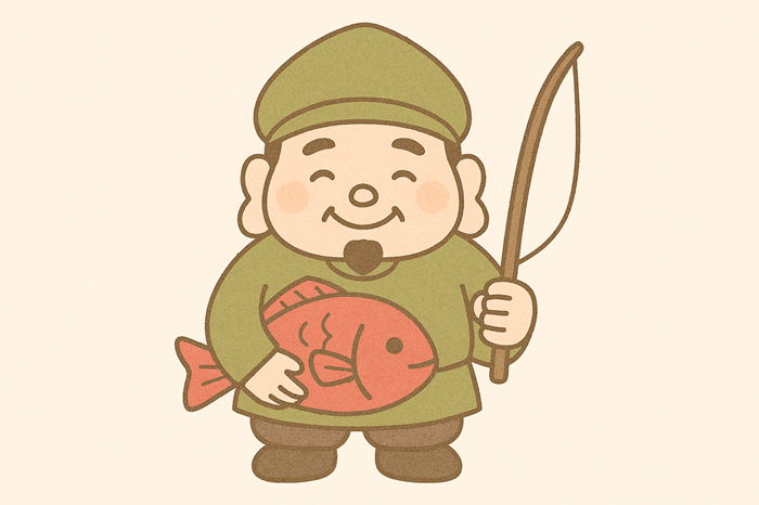 魚(たい)を持っている絵が多く、「たくさんとれる」「うまくいく」という意味があります。