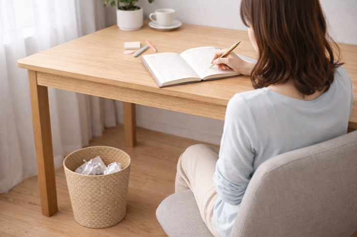 「空白でもOK」「1日1行で十分」「書けない日は飛ばしてもいい」「週に数回使えれば合格」など、気持ちが楽になるルールを決めておきましょう。