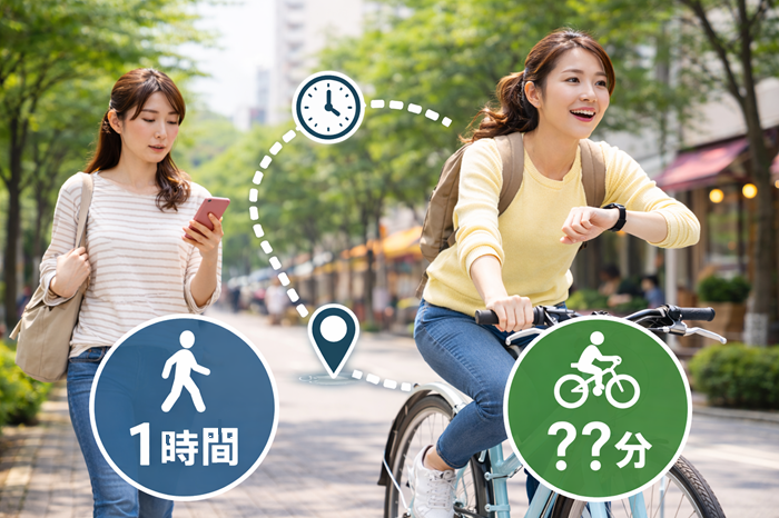 「歩いて1時間かかる距離、自転車ならどれくらい早く着くんだろう?」と思ったことはありませんか。
